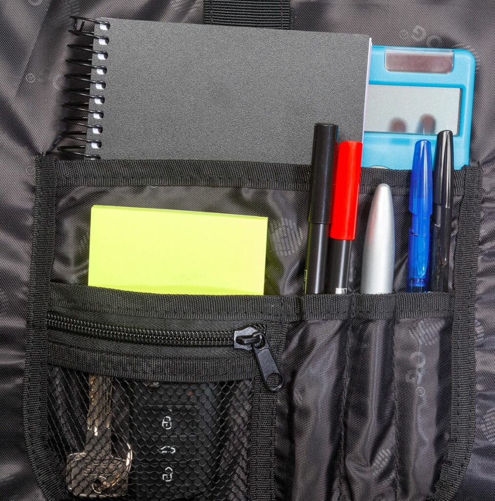 DHT System, Expandable Interior, Water/Wear-Resistant, Waterproof Rain Cover, Dedicated Laptop Compartment up to 15’’, Reflective Strips, Breathable Straps, EVA Back Panel, Adjustable Chest/Waist Straps, USB Connection, Side Pockets, Reinforced Frontal Panel.