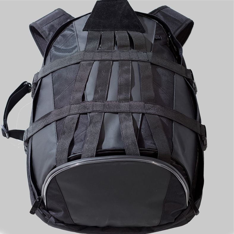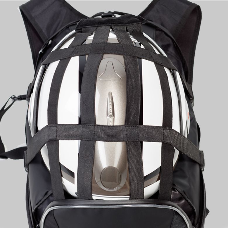 with an ergonomical EVA Back Panel and Adjustable Chest and Waist Straps. Perfectly able to carry up to TWO helmets at once.